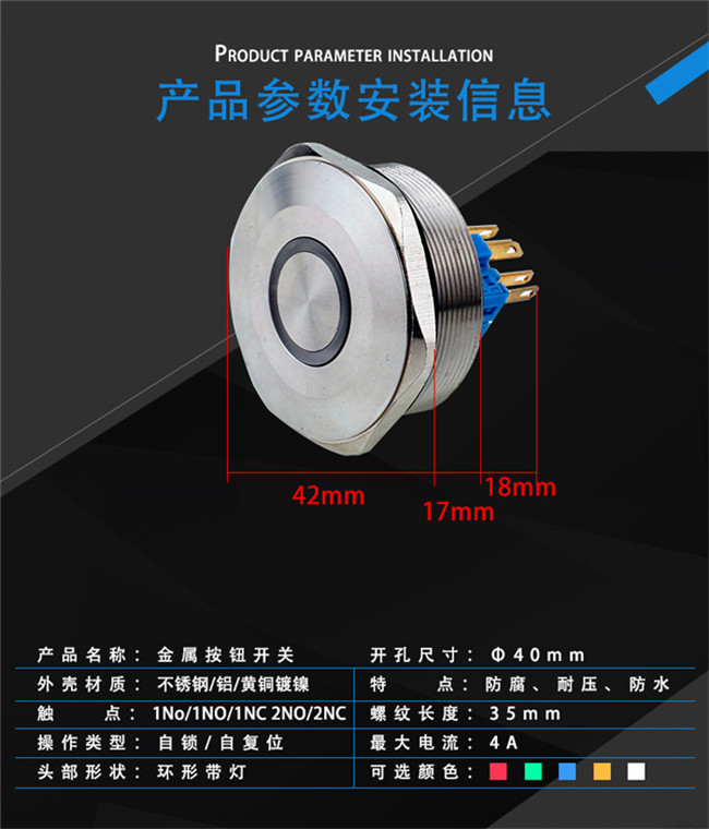 40mm環(huán)形帶燈金屬按鈕